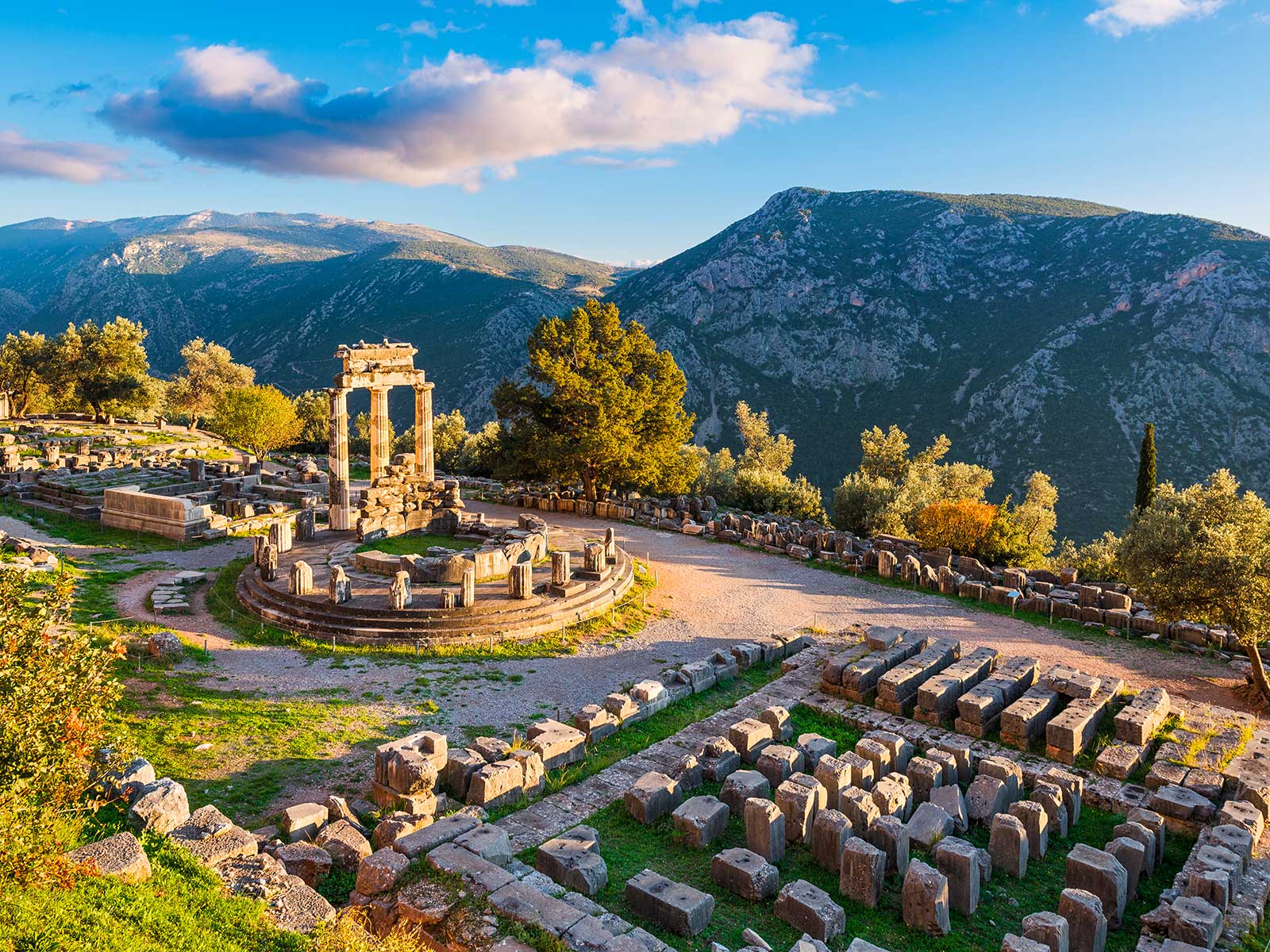 In Ancient Greece, Delphi was considered to be the center of the world and became famous by the Oracle of Delphi. Second to the Acropolis in Athens, Delphi is Greece’s most popular archaeological site. Today ruins and structures at Delphi include the Temple of Apollo, the Athenian Treasury, the theater and hippodrome.